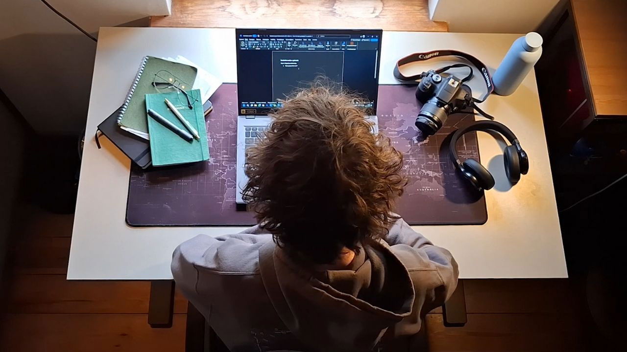 A student sits at home to work on a school assignment. He wants to start but keeps getting distracted. A phone notification. Hunger. Drifting thoughts. Time passes while he stays stuck in postponing and distraction.